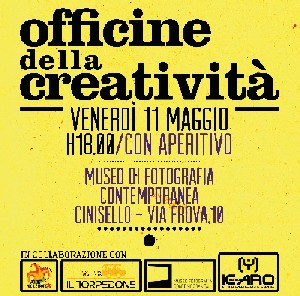 Vivi a Cinisello Balsamo o dintorni? Ti piacerebbe sperimentare qualcosa di nuovo che coinvolga i tuoi interessi? Abbiamo quel che fa per te! Ripartono le OFFICINE DELLA CREATIVITA’. Non ne hai mai sentito parlare? Vieni l’ 11 MAGGIO alle 18 al Museo di fotografia contemporanea! Mentre facciamo un aperitivo insieme, tu puoi vedere-chiedere-sperimentare le proposte che abbiamo per te! Viaggi in europa, organizzazione di eventi, il nuovo centro culturale, la web radio. Queste sono alcune delle iniziative a cui potrai prendere parte! Ti aspettiamo. Porta anche tutti i tuoi amici! |