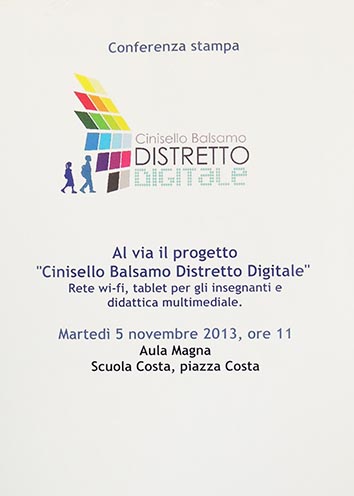 Il progetto, denominato “Cinisello Balsamo - distretto digitale”, vede coinvolti 4.600 studenti delle 17 scuole elementari e medie degli Istituti scolastici Buscaglia, Costa, Garibaldi, Zandonai, Paganelli, dove, nei mesi estivi, sono stati installati i server e le reti wi-fi; ognuna delle 218 classi è stata dotata di videoproiettore e telo da proiezioni, il tutto collegato con il tablet fornito alle insegnati. Per un investimento complessivo dell’Amministrazione comunale di circa 600 mila euro nell’arco di un triennio..
