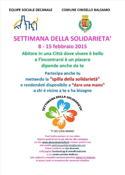 Un’intera settimana dedicata alla solidarietà. Verrà festeggiata dall’8 al 15 febbraio su iniziativa dell’Equipe sociale del Decanato di Cinisello Balsamo, con il patrocinio dell’Amministrazione Comunale.