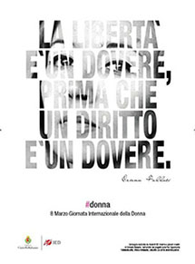 E’ frutto di un workshop durato un mese e mezzo, svolto in collaborazione con il Comune di Cinisello Balsamo e alcuni giovani creativi della città, la campagna realizzata in occasione dell’8 Marzo – Giornata Internazionale della Donna – da Azzurra Brunetti e Cecilia Brianzi, studentesse del terzo anno di Comunicazione Pubblicitaria.