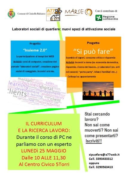 Iniziano gli incontri a tema alle 5 Torri. Il primo sarà durante il corso di pc: come si fa il Curriculum Vitae? e come si cerca lavoro? Non mancate: ne parliamo con un esperto