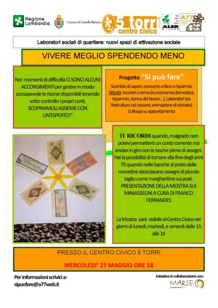 L’incontro si terrà presso il CENTRO CIVICO 5 TORRI