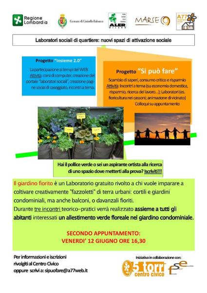 Il giardino fiorito è un Laboratorio gratuito rivolto a chi vuole imparare a coltivare creativamente "fazzoletti" di terra urbani: cortili e giardini condominiali, ma anche balconi, o davanzali fioriti.