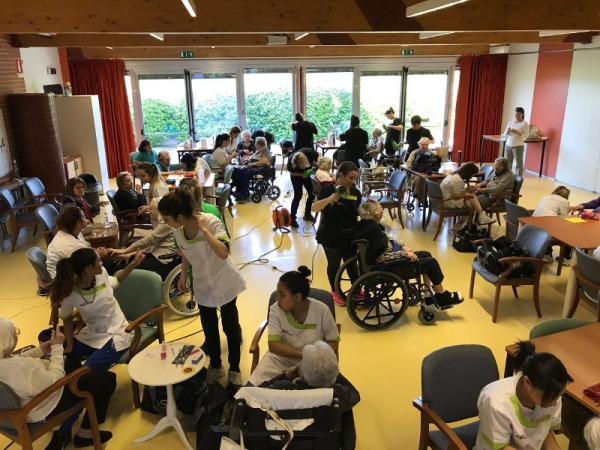 Durante gli incontri gli studenti si prendono cura degli anziani, sperimentando le loro competenze sul campo, in uno scambio reciproco di esperienze.