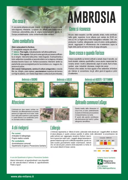 Per limitare i casi di pollinosi da ambrosia il Dipartimento di Igiene e Prevenzione Sanitaria della Direzione Generale Sanità della Regione Lombardia ha trasmesso la nota "Prevenzione delle allergopatie da Ambrosia in Lombardia", al fine di prevenire la patologia allergica ad essa collegata.