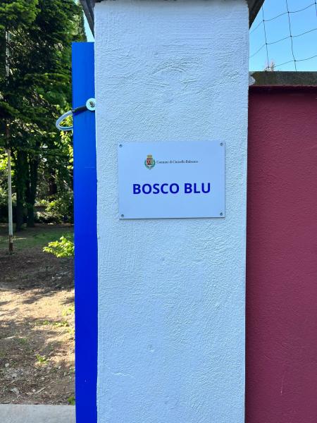 Il nuovo spazio, denominato “Bosco Blu – Sdraiati per terra con il naso all’insù”, è stato inaugurato il 12 aprile 2023 alla presenza di bambini e insegnanti.
