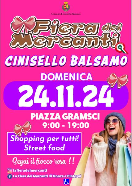 Domenica 24 novembre Piazza Gramsci si anima con "la Fiera dei Mercanti di Monza" con gli operatori del commercio ambulante che rappresentano il meglio del made in Italy nei settori: tessile, arredamento casa, cura della persona, accessori, pelletteria e calzature, abbigliamento, alimentari e prodotti caseari, frutta e dolciumi.