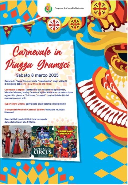 Sabato 8 marzo, dalle 14.30, ritrovo in Piazza Gramsci per un pomeriggio ricco di divertimento e intrattenimento con spettacoli circensi, trampolieri itineranti e musica in compagnia dei supereroi più amati dai bambini.