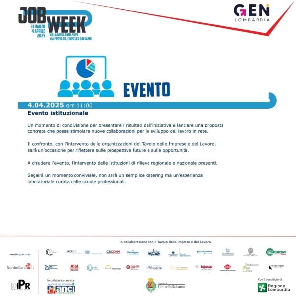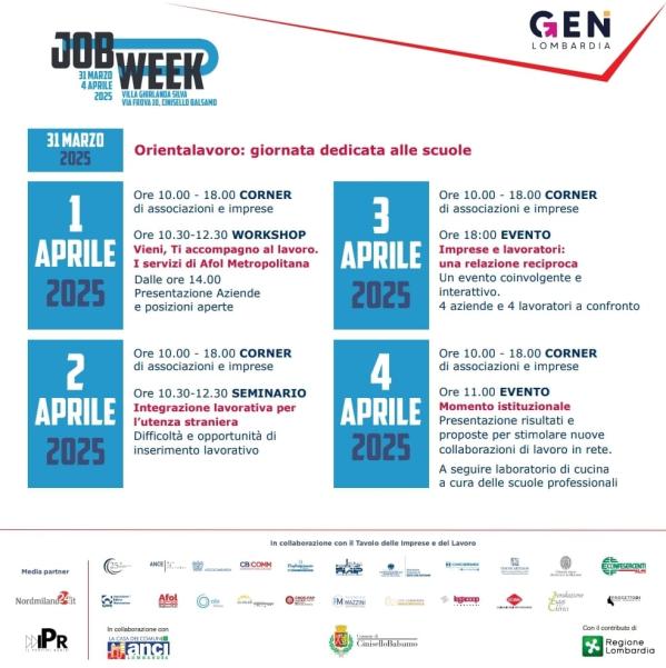 Dal 31 marzo al 4 aprile 2025, Villa Ghirlanda Silva ospiterà la seconda edizione della Job Week, evento organizzato dal Comune di Cinisello Balsamo in collaborazione con il Tavolo delle Imprese e del Lavoro, che riunisce 23 enti tra associazioni, enti formativi e il Centro per l’Impiego.