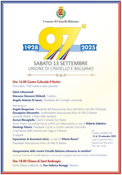 Per celebrare il 97° anniversario dell’unione dei Comuni di Cinisello e Balsamo, avvenuto con Regio Decreto,