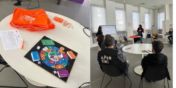 Gioco interattivo sull’imprenditorialità sociale e sui 17 SDG, obiettivi di sviluppo sostenibile. Abbiamo avuto l’occasione di giocare e ricevere ulteriori feedback.