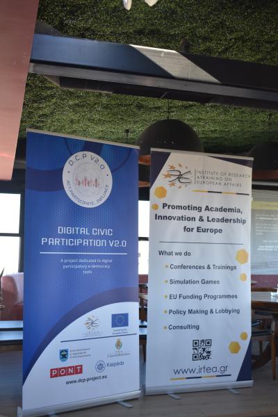 Irtea, il partner Greco, ha organizzato questo evento internazionale per permettere a tutte le organizzazioni coinvolte in Digital Civic Participation di presentare i risultati ottenuti durante le azioni del progetto appena concluse, quali: una ricerca sulla partecipazione digitale nazionale, due workshop e un questionario online. Tutte queste azioni avevano come tema principale la partecipazione digitale dei cittadini e l’obiettivo era di raccogliere informazioni sullo stesso tema.
