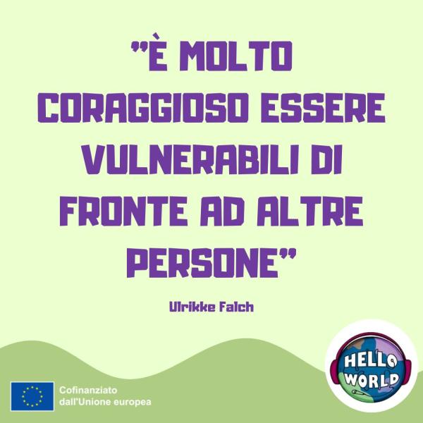 Hello world è un progetto di podcast per giovani della durata di un anno, finanziato da Erasmus+ e organizzato da sette diversi Paesi (Norvegia, Svezia, Italia, Turchia, Finlandia, Danimarca e Lituania), con l’obiettivo di promuovere la cittadinanza attiva e rafforzare l’alfabetizzazione emotiva e digitale.