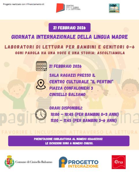 In occasione della Giornata della Lingua Madre, Progetto Integrazione in collaborazione con il Comune di Cinisello Balsamo e la cooperativa Orsa, propone per sabato 21 febbraio dei laboratori di lettura.