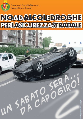 | Resta infatti sempre alta l’attenzione dell’Amministrazione comunale sulla problematica dell’abuso di alcol e sostanze stupefacenti da parte degli automobilisti a distanza di due anni dal lancio della campagna di sensibilizzazione pubblica "No ad alcol e droghe per la sicurezza stradale". La Campagna, premiata dalla stessa Provincia di Milano nell’ambito del concorso "ComunicaMI 2010", aveva visto oltre all’affissione di manifesti shock (nella foto), anche l’installazione di auto incidentate in alcuni punti strategici della città con la ricostruzione dei sinistri stradali, iniziative ad hoc nelle scuole, distribuzione di etilotest e intensificazione di controlli e accertamenti sul territorio. Con la ripresa della scuola sono ripartite le lezioni negli istituti superiori cinisellesi tenute dagli agenti della Polizia Locale sulla sicurezza stradale e continueranno fino alla fine dell’anno. Guarda il grafico delle statistiche. |