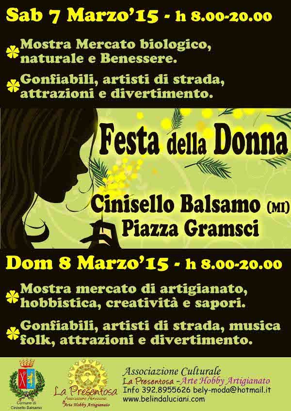 Sabato 7 marzo 2015 dalle ore 8 alle 20 in piazza Gramsci: Mostra Mercato biologico, Mercato di artigianato hobbistica creatività e sapori. Gonfiabili, artisti di strada, musica folk e tante altre attrazioni