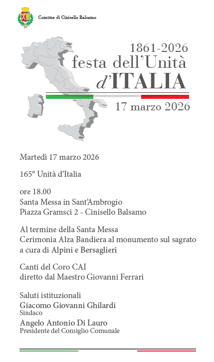 Martedì 17 marzo 2026 è il 165° Anniversario dell’Unità d’Italia.