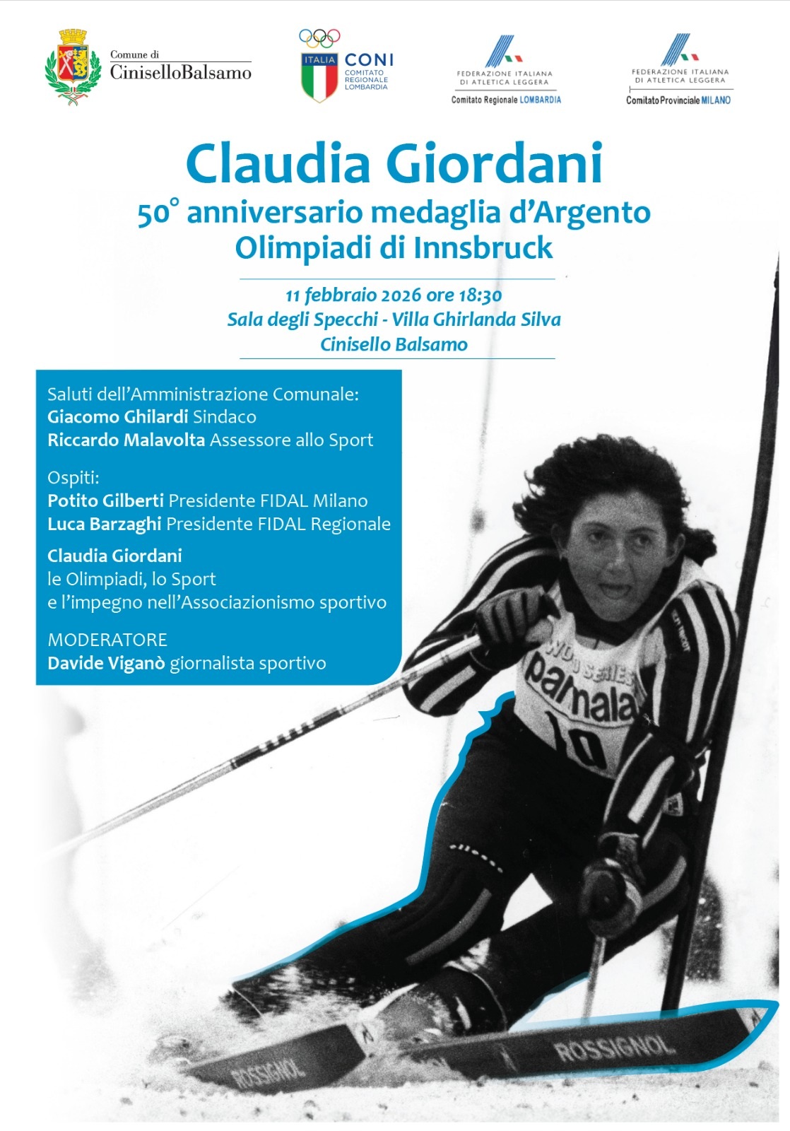 Anche l’Amministrazione comunale di Cinisello Balsamo celebra lo spirito olimpico con un incontro speciale, aperto alla cittadinanza, dedicato a Claudia Giordani, ex sciatrice alpina italiana e oggi dirigente sportiva, nel 50° anniversario del conferimento della medaglia d’argento alle Olimpiadi Invernali di Innsbruck del 1976.
