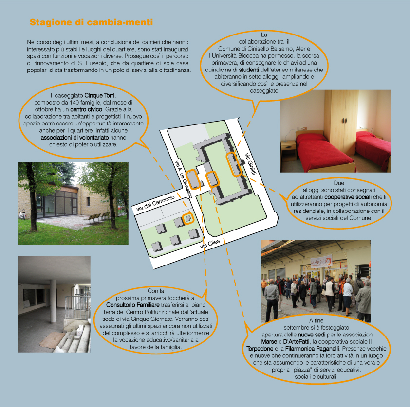 In altri casi sono stati attivati servizi richiesti dagli abitanti come nel caso di quelli rivolti agli anziani e famiglie o libere iniziative come quelle intraprese dai comitati inquilini o dalle associazioni del territorio.