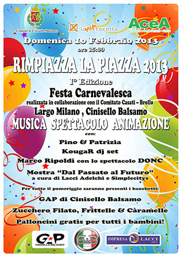 Una fantastica Festa Carnevalesca, con spettacoli, musica e animazione, ti aspetta DOMENICA 10 FEBBRAIO 2013 ORE 15:00, in via Largo Milano - Cinisello Balsamo.