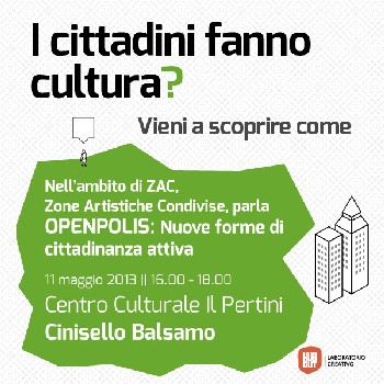 Nell’ambito del progetto ZAC - Zone Artistiche Condivise, HubOut promuove un momento di incontro con l’Associazione Openpolis sulle tematiche legate alla democrazia partecipata alla luce dei nuovi strumenti offerti dalla rete, discutendone le potenzialità e i nuovi scenari di riflessione.