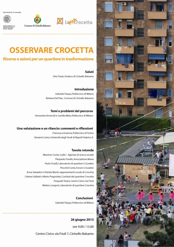 Mercoledì 26 giugno si è tenuto un interessante convegno dal titolo ’Osservare Crocetta: risorse e azioni per un quartiere in trasformazione’.