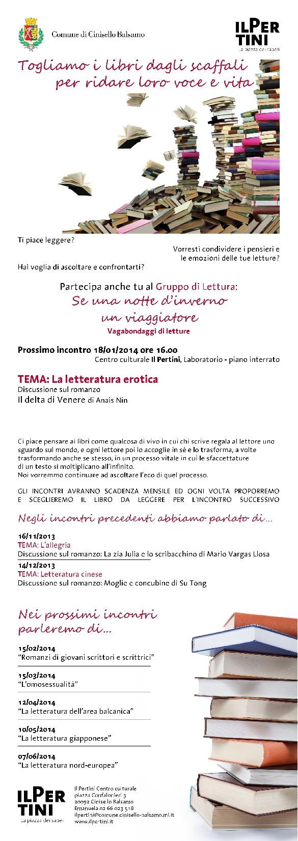 Per il secondo anno il nostro gruppo di lettura si ritrova un sabato pomeriggio al mese al piano interrato del Pertini.