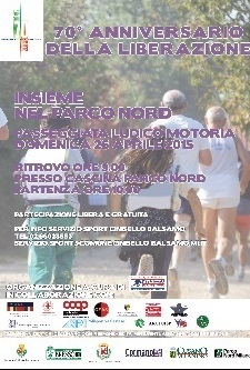 In occasione delle celebrazioni per il 70° della Liberazione, la scrivente Amministrazione - unitamente ai Comuni di Bresso, Cormano, Cusano Milanino e Sesto San Giovanni - e con il supporto e la collaborazione di alcune realtà sportive locali, organizzerà - il prossimo 26 Aprile - in seno al Parco Nord, una marcia non competitiva cui tutti sono invitati a partecipare. Un modo diverso, attivo e partecipato per ricordare un momento importante della nostra storia nazionale.