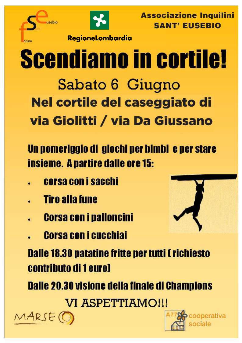 Riportiamo alcune foto della giornata di Sabato 6 giugno presso il cortile del caseggiato di via Giolitti/ via da Giussano. Il manifesto.pdf 861.7 Kb