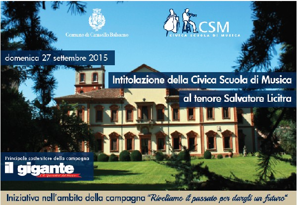 A un anno dal trasferimento nella nuova sede in villa Ghirlanda Silva, la Civica Scuola di Musica viene intitolata a Salvatore Licitra.