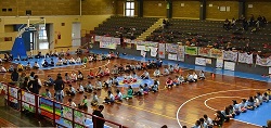 I bambini sono arrivati al palazzetto insieme ai propri insegnati e ad alcuni genitori, con l’aiuto dei quali hanno allestito le tribune con i propri coloratissimi striscioni, colmi di frasi significative.