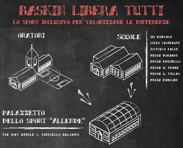 Anffas Onlus Nord Milano, quale ente capo fila, coadiuvato da alcuni partners istituzionali (compreso il comune di Cinisello Balsamo) e sostenuto dall’adesione di una pluralità di realtà scolastiche ed oratoriali del territorio, ha dato vita al progetto “Baskin Libera tutti!, vincendo un bando di finanziamento congiunto di Regione Lombardia e Fondazione Cariplo.