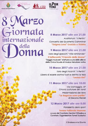 Per festeggiare la Giornata Internazionale della Donna l’ Amministrazione Comunale ha organizzato dall’8 al 12 marzo 2017 una serie di eventi, tra cui uno in ambito sportivo che vi segnaliamo.