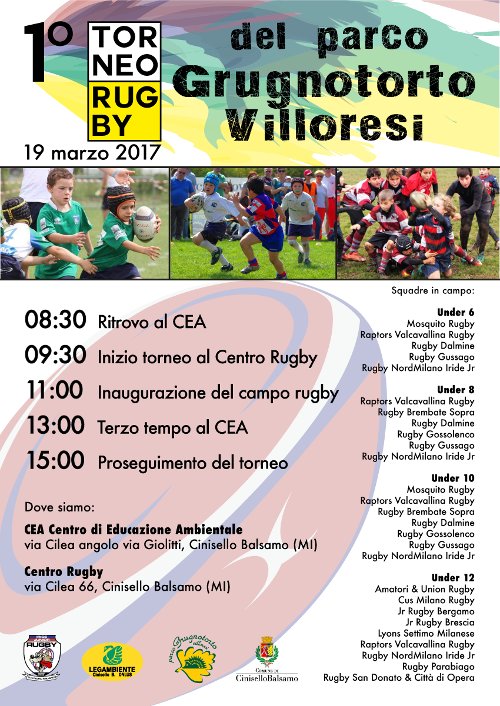 9.30 Inizio torneo al Centro Rubgy, via Cilea 66, Cinisello Balsamo