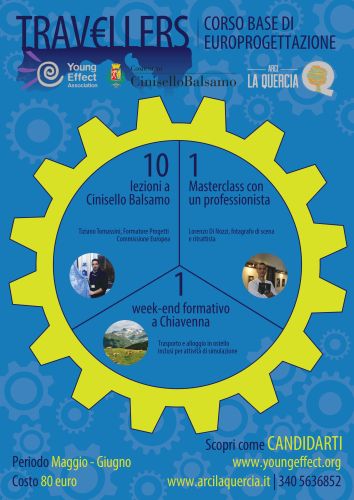 Mercoledì 3 maggio 2017 inizierà "Travellers. Corso base di europrogettazione", a cura dalle associazioni YoungEffect e Arci La Quercia e finanziato dal Comune di Cinisello Balsamo.