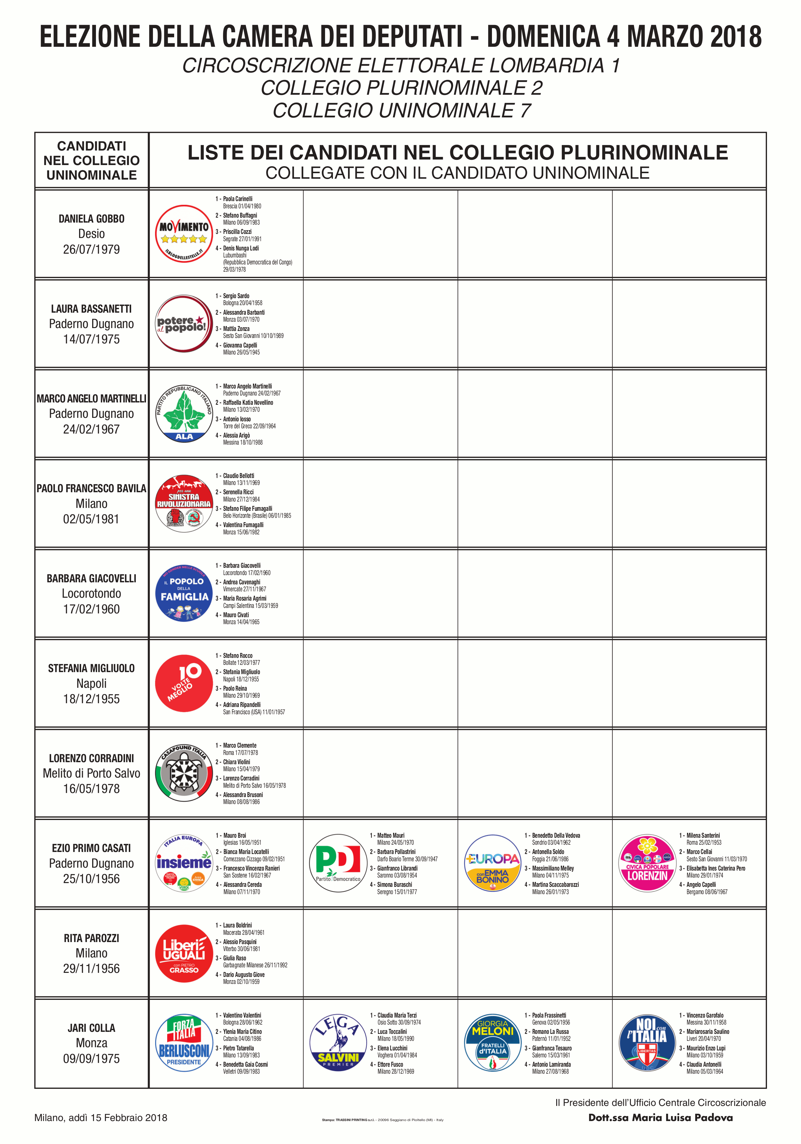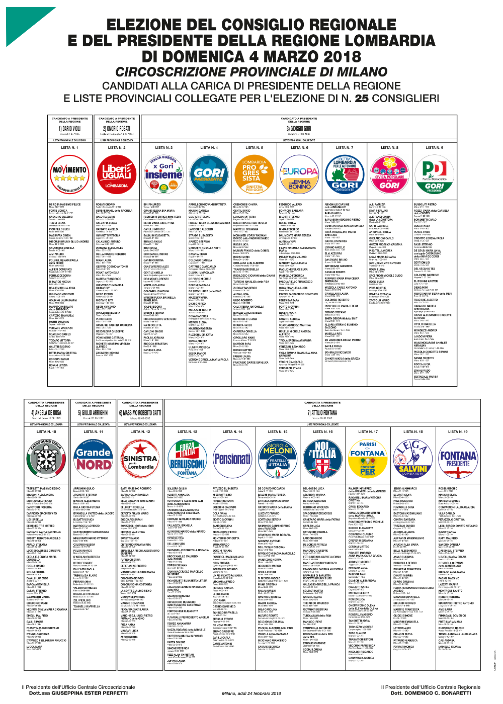 ELEZIONE DEL CONSIGLIO REGIONALE E DEL PRESIDENTE DELLA REGIONE LOMBARDIA DI DOMENICA 4 MARZO 2018