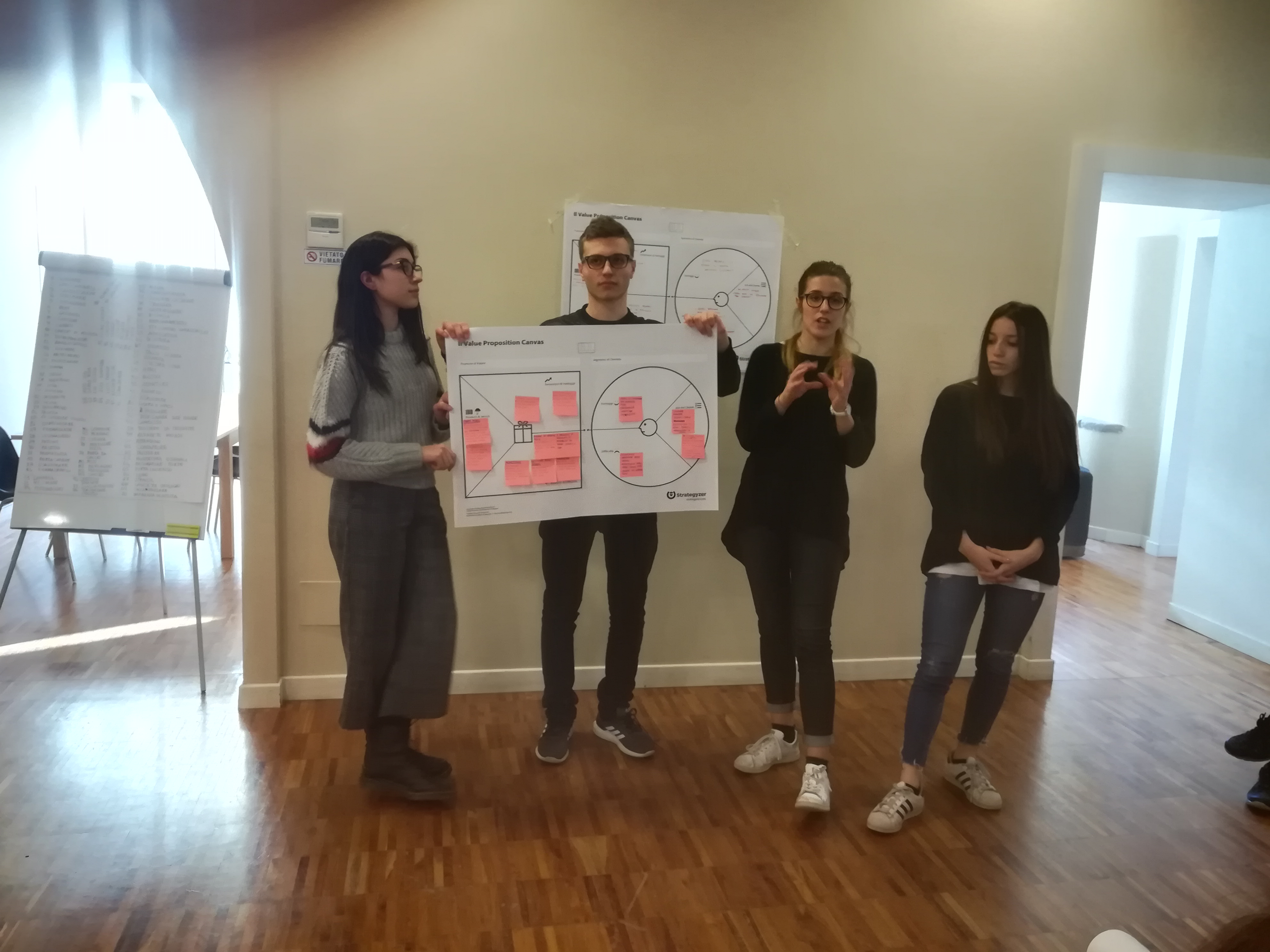 Startup, coworking, business canvas, value proposition: parole fino ad ora sconosciute per un giovane delle scuole secondarie ma che per il futuro potranno rappresentare un’opportunità concreta di inserimento nel mondo del lavoro. I ragazzi e le ragazze aderenti al progetto hanno lavorato tre giorni intensamente allo sviluppo di idee originali e innovative attraverso strumenti non formali come il brainstorming, giochi di warm up e ice break, storytelling e pitch. Come anche per l’esperienza precedente, non sono mancati momenti più tecnici: le idee emerse hanno dovuto trovare una collocazione sensata e fattibile nei modelli economico - imprenditoriali del business canvas e del value proposition, utilizzati dalle aziende più importanti del mondo. Le idee che i ragazzi hanno elaborato, inquadrato nei modelli imprenditoriali intervenuti sono state:
