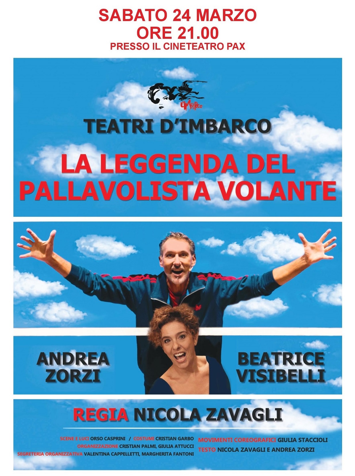 Sul palco ci sarà Andrea Zorzi, detto "Zorro", pallavolista due volte campione del mondo e tre volte campione europeo con l’indimenticabile Nazionale di Julio Velasco, accompagnato dall’esplosiva attrice Beatrice Visibelli, che disegnerà un percorso narrativo carico di ironica allegria, interpretando la moltitudine di personaggi incontrati dell’atleta italiano.
