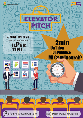 Il prossimo 27 marzo dalle ore 20:30, presso l’Auditorium del Centro il Pertini, è prevista quindi la finalissima per scegliere quali di queste idee risulteranno le migliori. I ragazzi esporranno il proprio progetto attraverso l’Elevator pitch, una brevissima presentazione di soli 2 minuti, durante la quale dovranno essere in grado di far arrivare la propria idea al pubblico nel migliore dei modi. Questo strumento di presentazione, ispirato da molti film americani, si rifà a quella situazione in cui un giovane con buone idee non riuscendo a ottenere mai un appuntamento con il manager, sia costretto a rincorrerlo fino in ascensore per poter utilizzare il pochissimo tempo che la fortuna gli sta riservando.