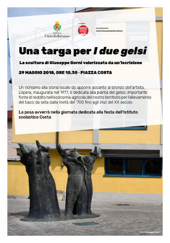 L’opera, inaugurata nel 1977, è dedicata alla pianta del gelso, importante fonte di reddito nell’economia agricola del territorio per l’allevamento del baco da seta dalla metà del ’700 fino agli inizi del XX secolo. Una cerimonia pensata nella giornata della festa dell’Istituto scolastico Costa.