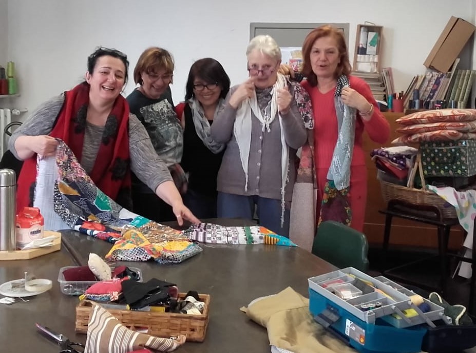 Lo spazio di sartoria è un luogo dove si può venire per cucire insieme a tante amiche e ad eseguire piccole riparazioni sartoriali oppure imparare le basi del cucito insieme alle sarte volontarie.