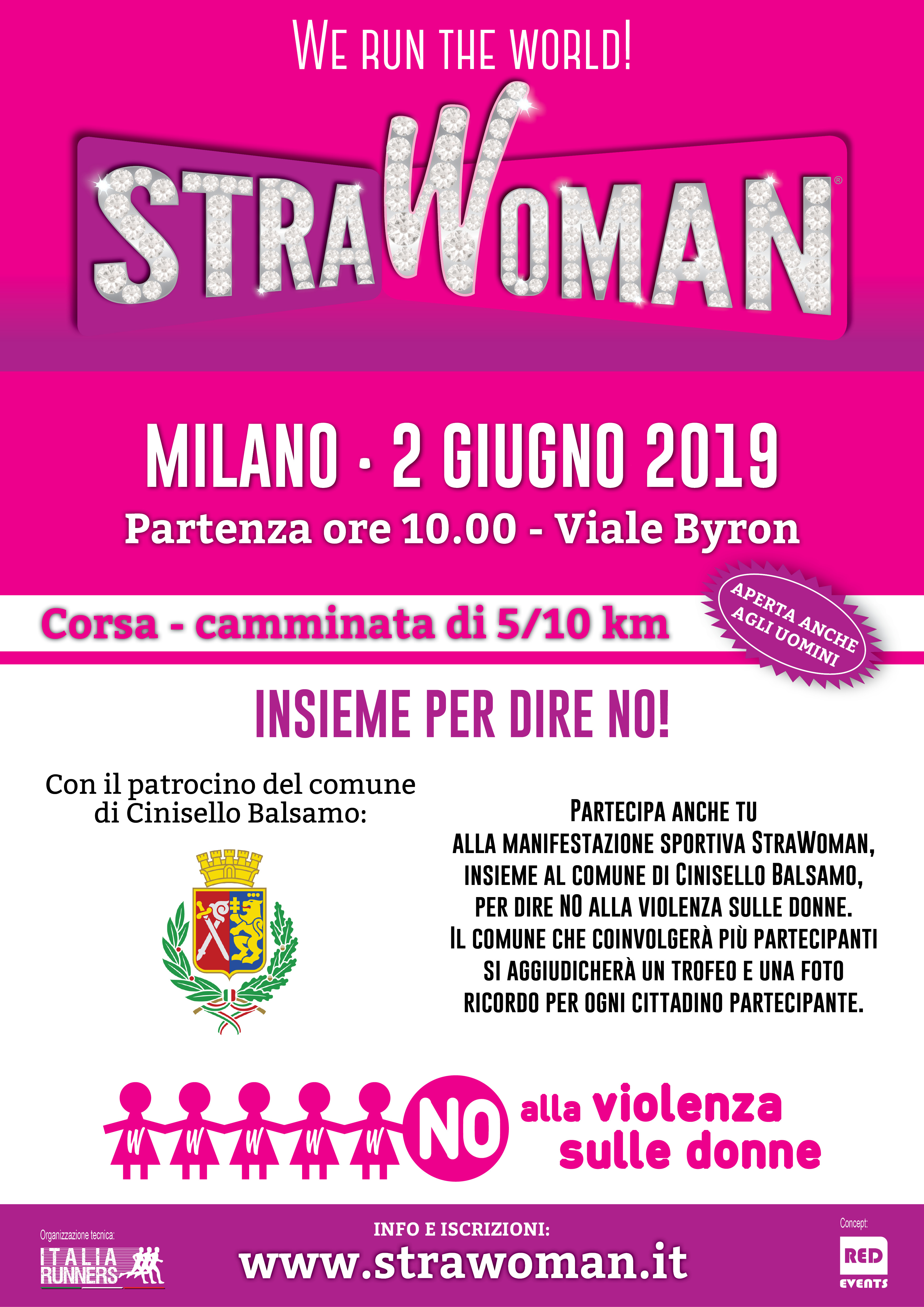 Insieme per dire NO alla violenza sulle donne. Corsa/Camminata di 5/10 Km Milano - 2 giungo 2019 Partenza ore 10.00 - Viale Bayron
