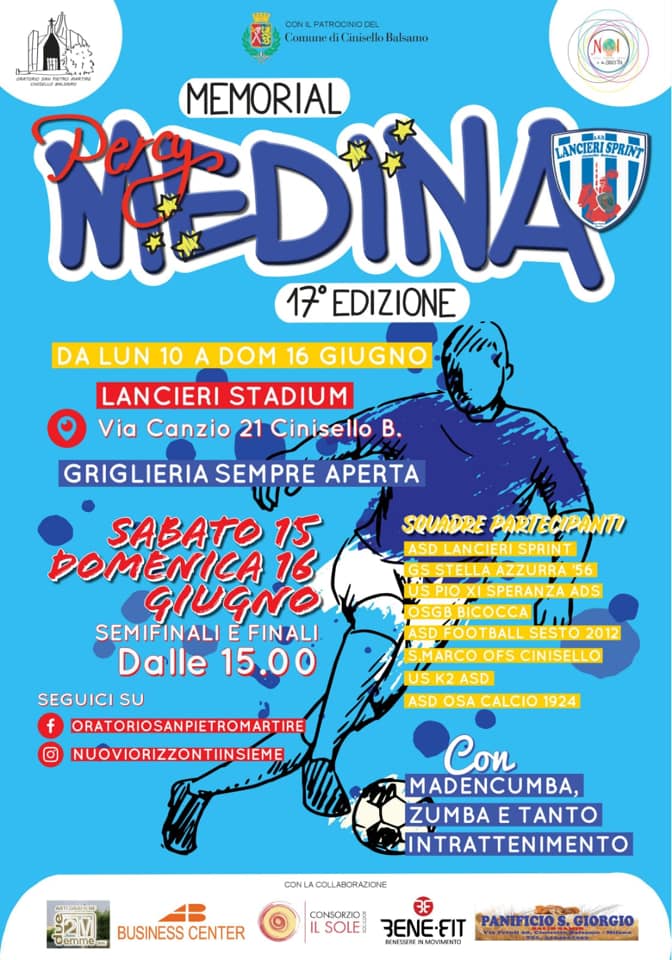 Da lunedì 10 a domenica 16 giugno 2019 presso il Campo di gioco - Via Canzio 21 si terrà la 17 ª edizione del "Torneo Memorial Percy Medina".
