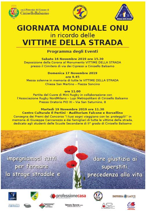 L’Associazione Italiana Familiari e Vittime della Strada Onlus celebra, la Terza Domenica del mese di Novembre, la Giornata Mondiale del Ricordo delle Vittime della Strada, affinché la memoria sia monito per la prevenzione del sinistro stradale.