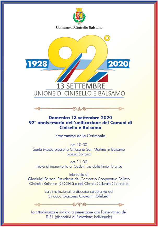 Per festeggiare i 92 anni dall’unione dei due comuni domenica 13 settembre verrà dedicato un momento istituzionale in ricordo dell’avvenimento che ha segnato una tappa fondamentale per la storia della nostra città.