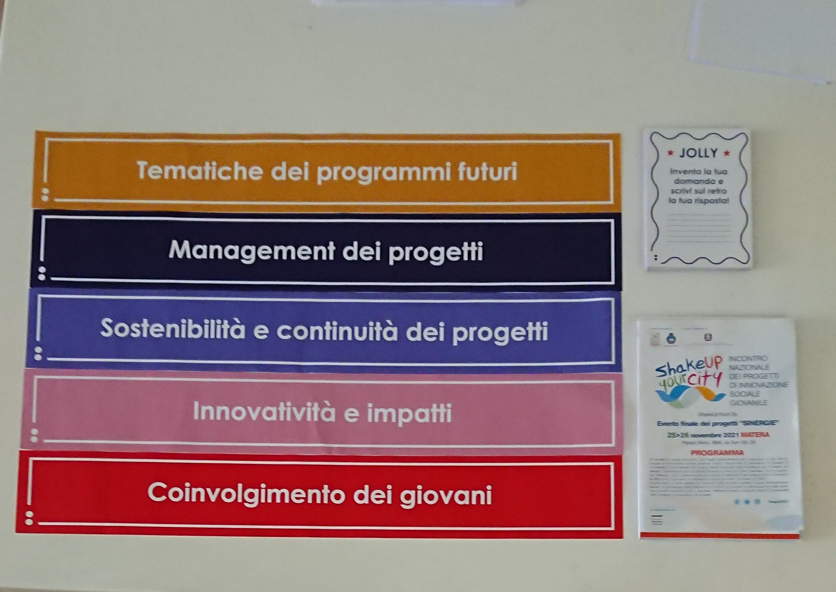 Nelle giornate del 25 e del 26 novembre 2021 si è tenuto a Matera l’evento “Shake Up Your City - Incontro nazionale dei progetti di innovazione sociale giovanile”. L’incontro è stato organizzato da ANCI e dalla Presidenza del Consiglio dei Ministri in collaborazione con i Comuni di Matera e di Cinisello Balsamo.