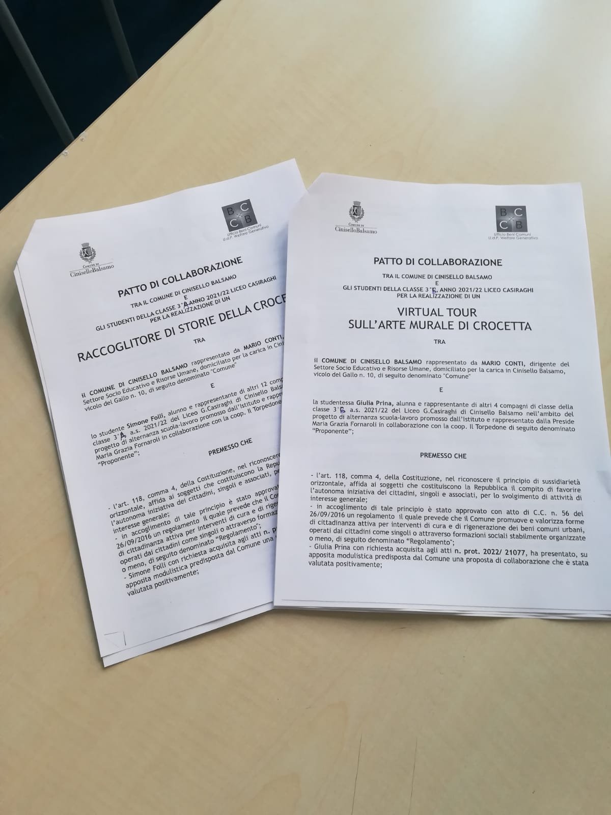 attività formalizzate in 3 Patti di Collaborazione a favore della città da parte degli studenti della classe 3A, 3B e 3C del Liceo Casiraghi, occasione di ’incontro’ tra le generazioni.