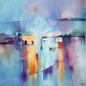 Frammenti di viaggio in una elaborazione pittorica, con pennellate informali e l’uso di colori freddi, per evocare i paesaggi nordici vissuti.