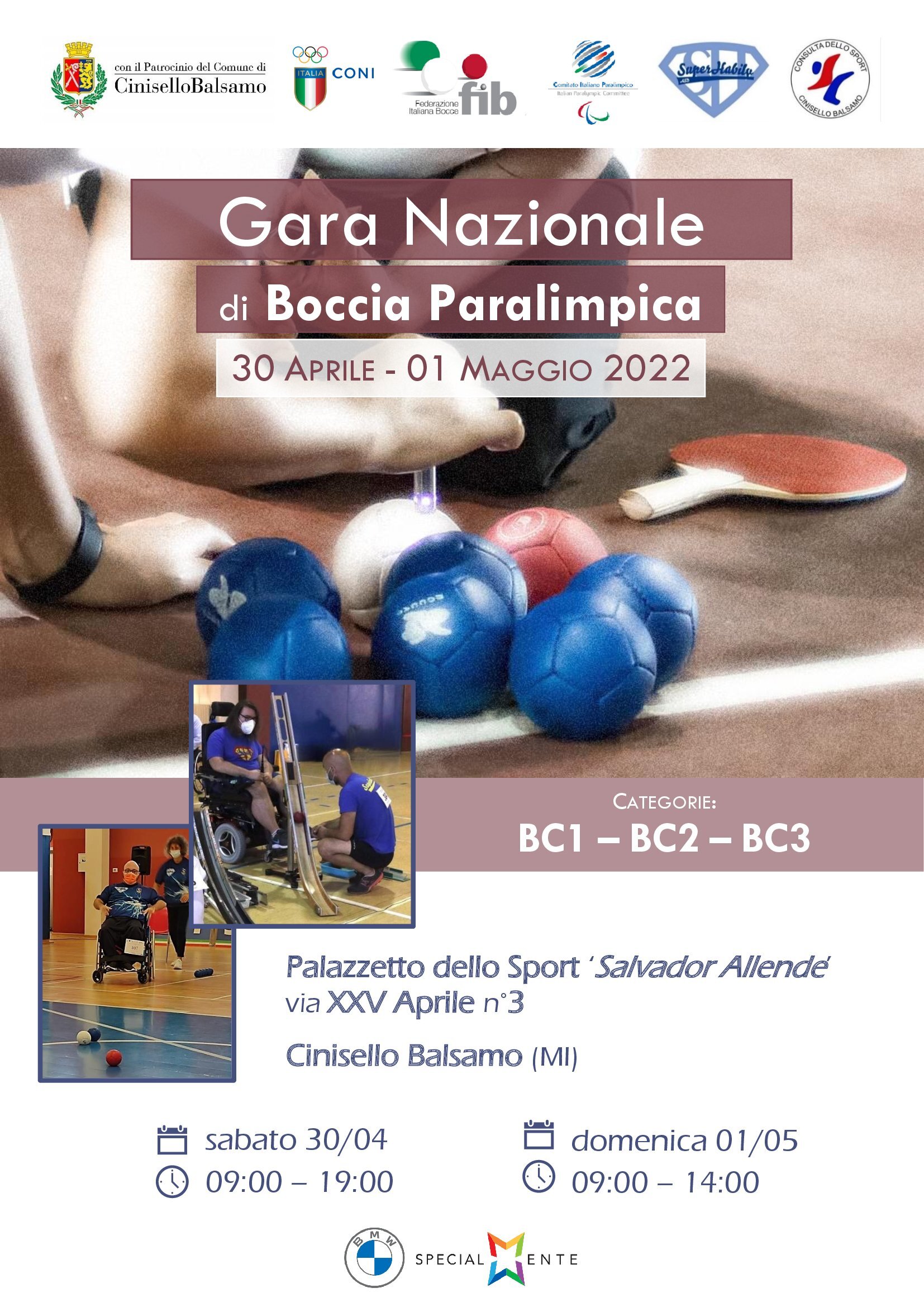 Sabato 30 aprile e Domenica 1 maggio, l’ASD Polisportiva Superhabily organizza, con il patrocinio del Comune di Cinisello Balsamo, la prima gara Nazionale di Boccia Paraolimpica 2022 presso il Palazzetto dello Sport S. Allende, il programma prevede l’inizio delle gare sabato dalle ore 9.00 fino alle ore 19.00, mentre domenica gli atleti saranno impegnati dalle ore 9.00 alle ore 14.00.