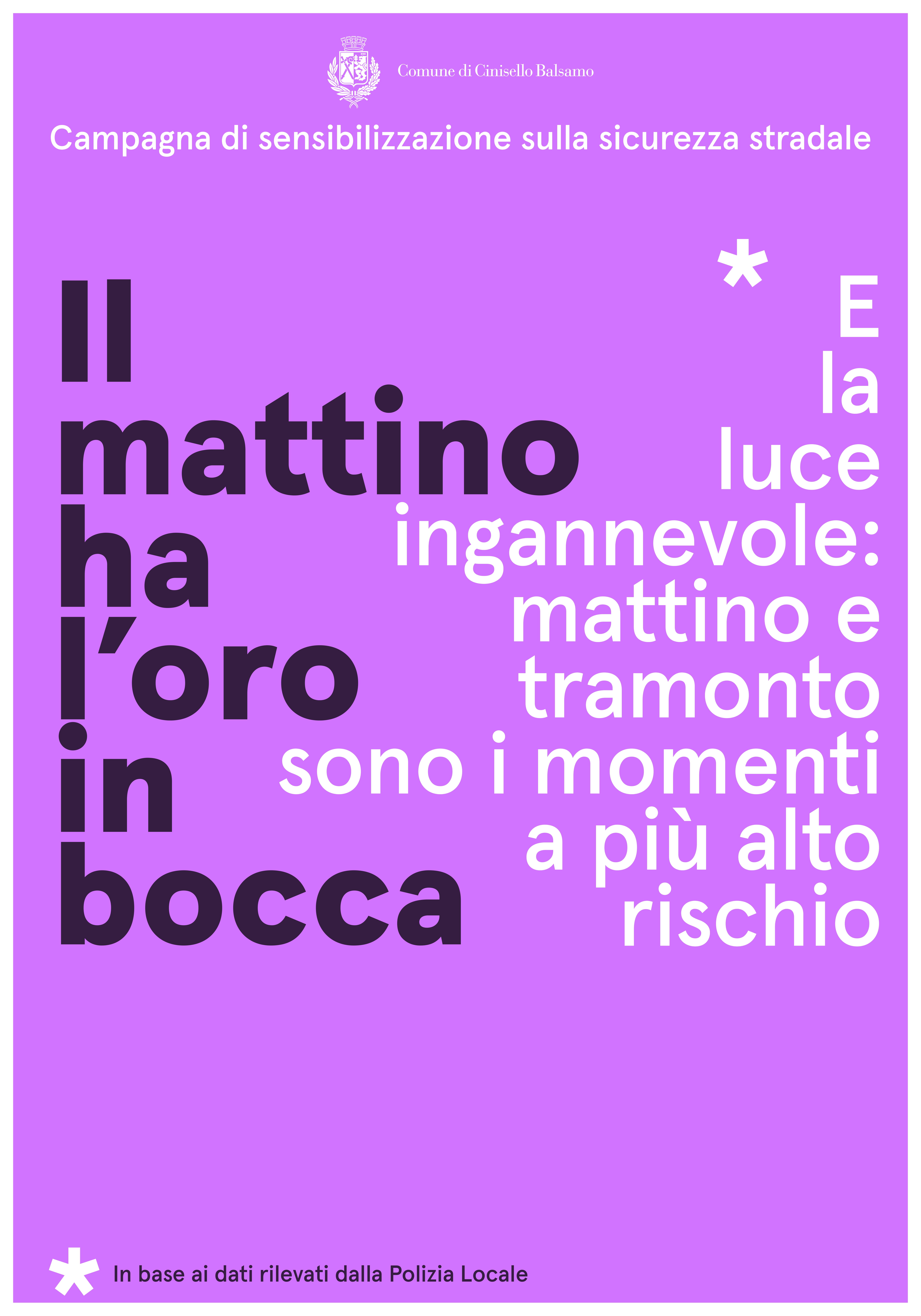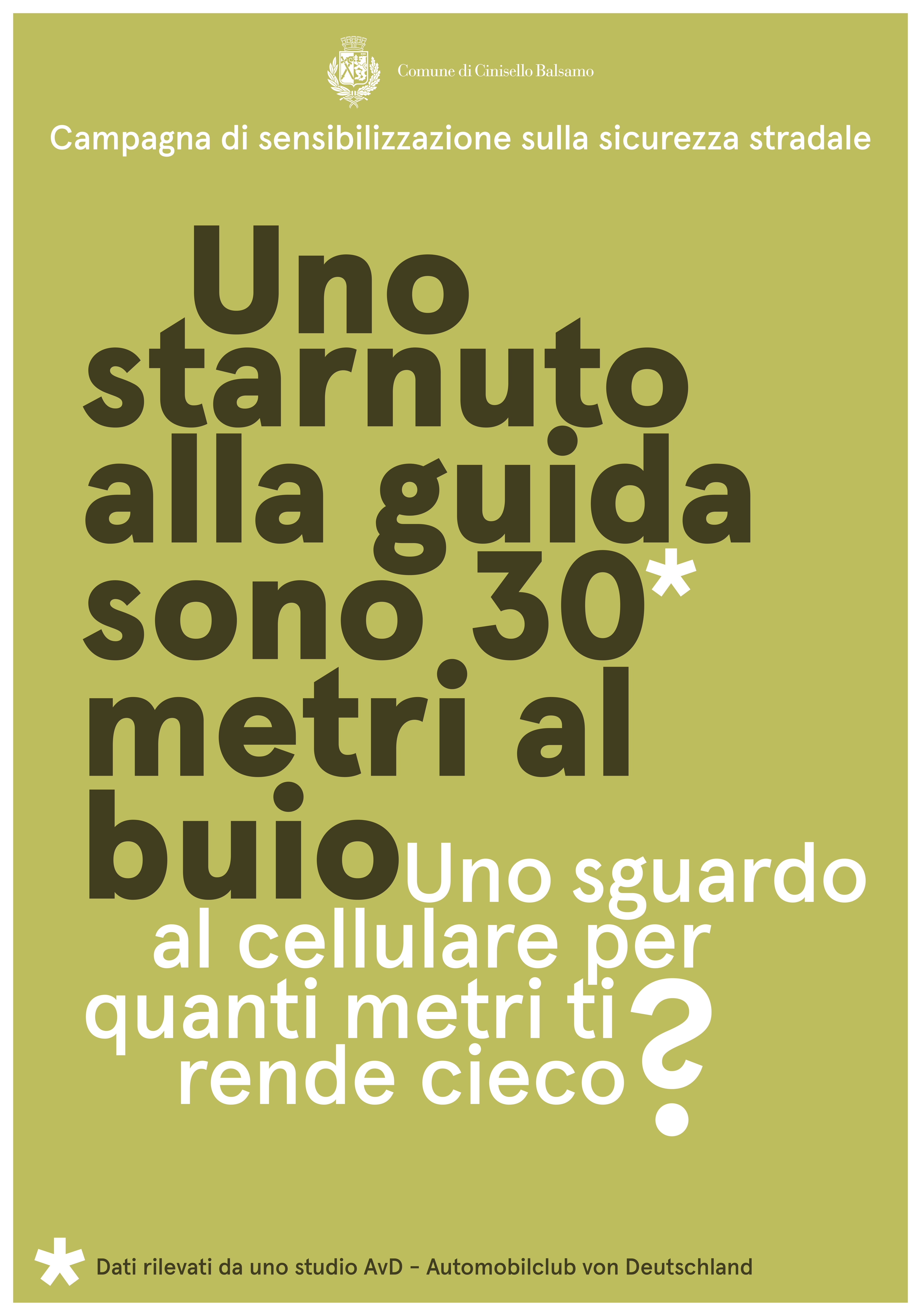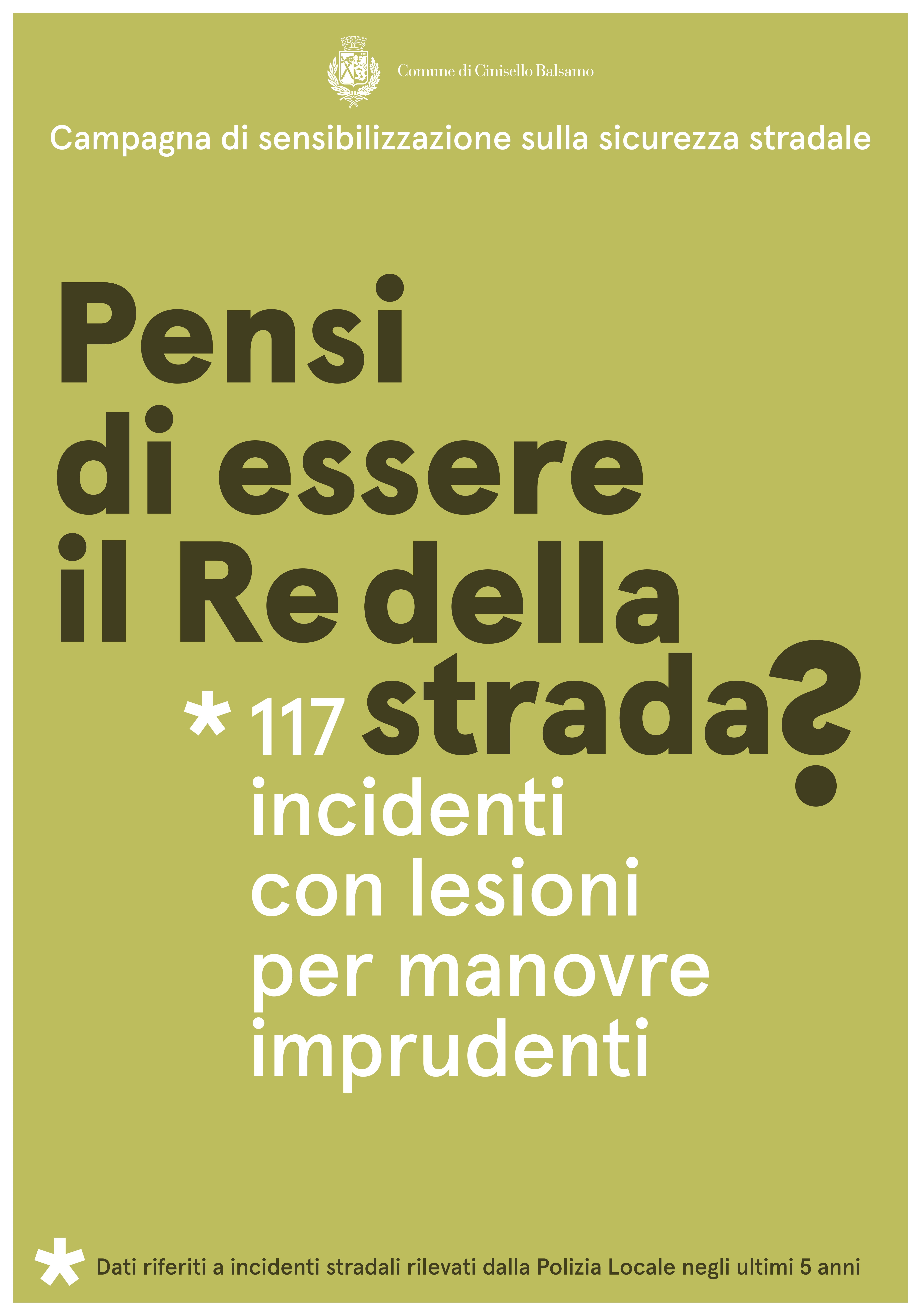 Per l’occasione l’Amministrazione comunale ha lanciato una campagna di sensibilizzazione sulla sicurezza in strada composta da 12 manifesti che riportano proverbi e modi di dire comuni relativi a prudenza e comportamenti da evitare, accompagnati da dati rilevati dalla Polizia Locale relativi a incidenti stradali verificatisi sul territorio cittadino negli ultimi 5 anni.